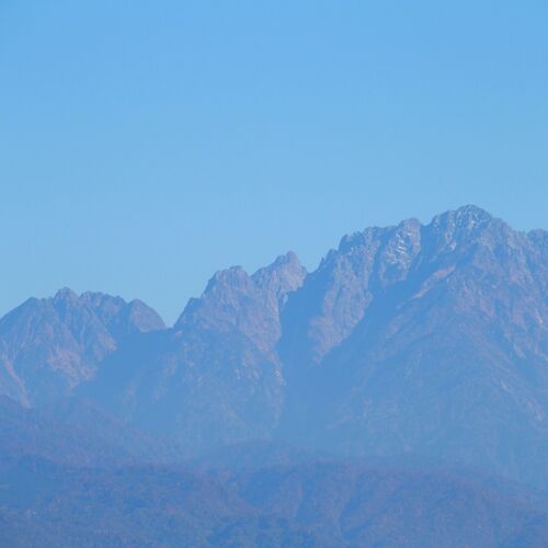ちょっと天気よすぎるくらい良い。ここまで青い空は一年でもそう見るわけではない。悲しい裏日本だ^^;。今年最後の雲一つない午後かも知れない。ほんと、一年を通して、雲一つかからない山並みを見るのっては至難のワザだ。朝イチとかならまだしも午後に…
